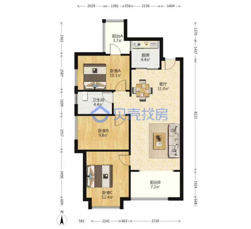 房子也不錯(cuò),94平的三房?jī)蓮d一衛(wèi),贈(zèng)送多沒(méi)什么公攤,房間挺大的。