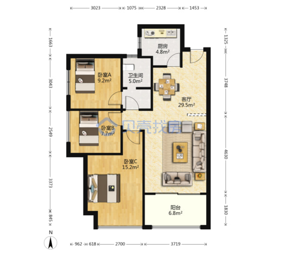91.5平,精裝三房?jī)蓮d一衛(wèi),89.1萬(wàn)撿漏,單價(jià)不到一萬(wàn)一平。