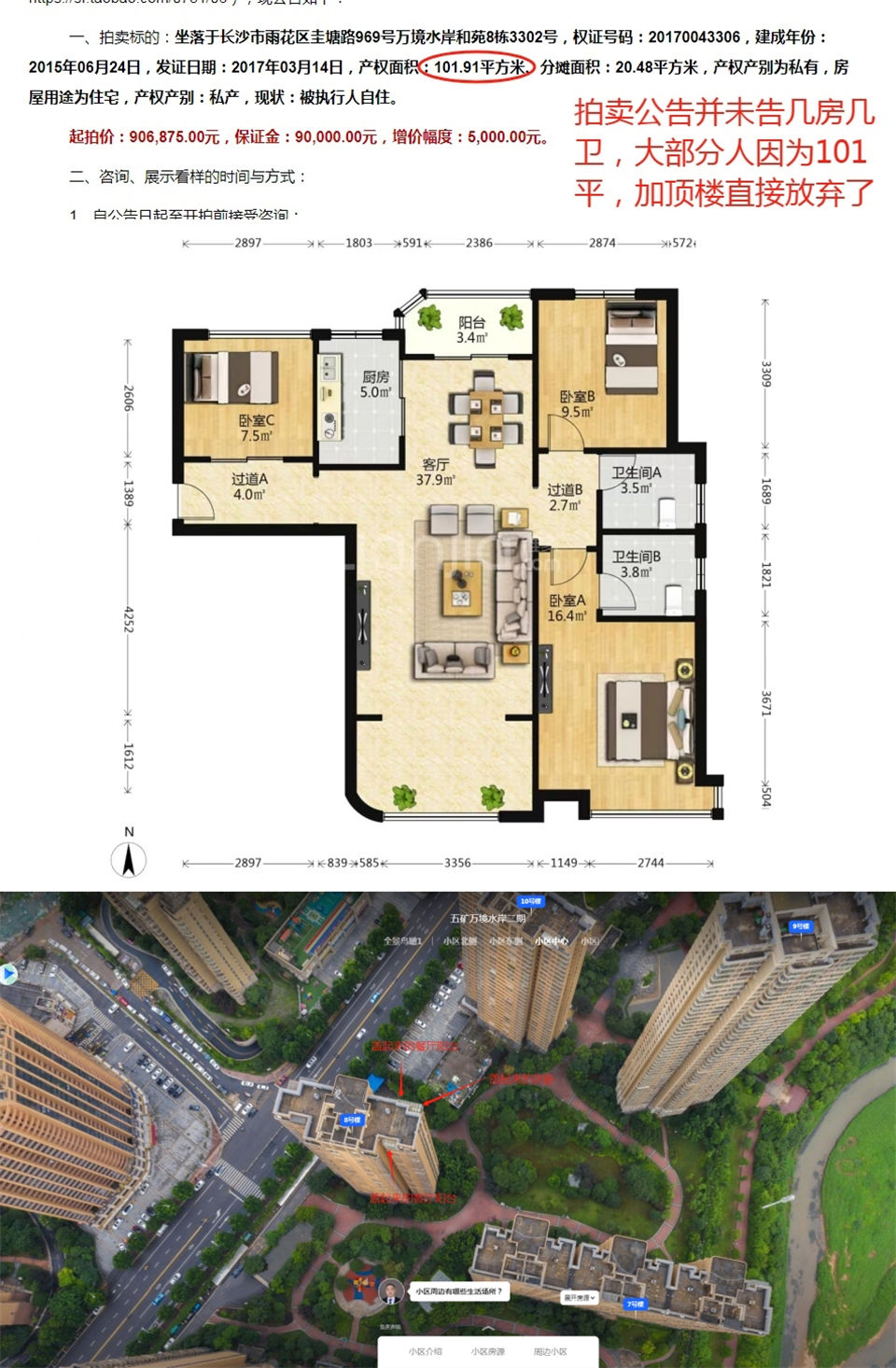 2、不去看房,以為是101平,最多以為是三房一衛(wèi),根本不曉得是三房?jī)尚l(wèi),要不是業(yè)主現(xiàn)場(chǎng)說(shuō),更不曉得這個(gè)102平的頂樓實(shí)際就是樓下117平的戶(hù)型。