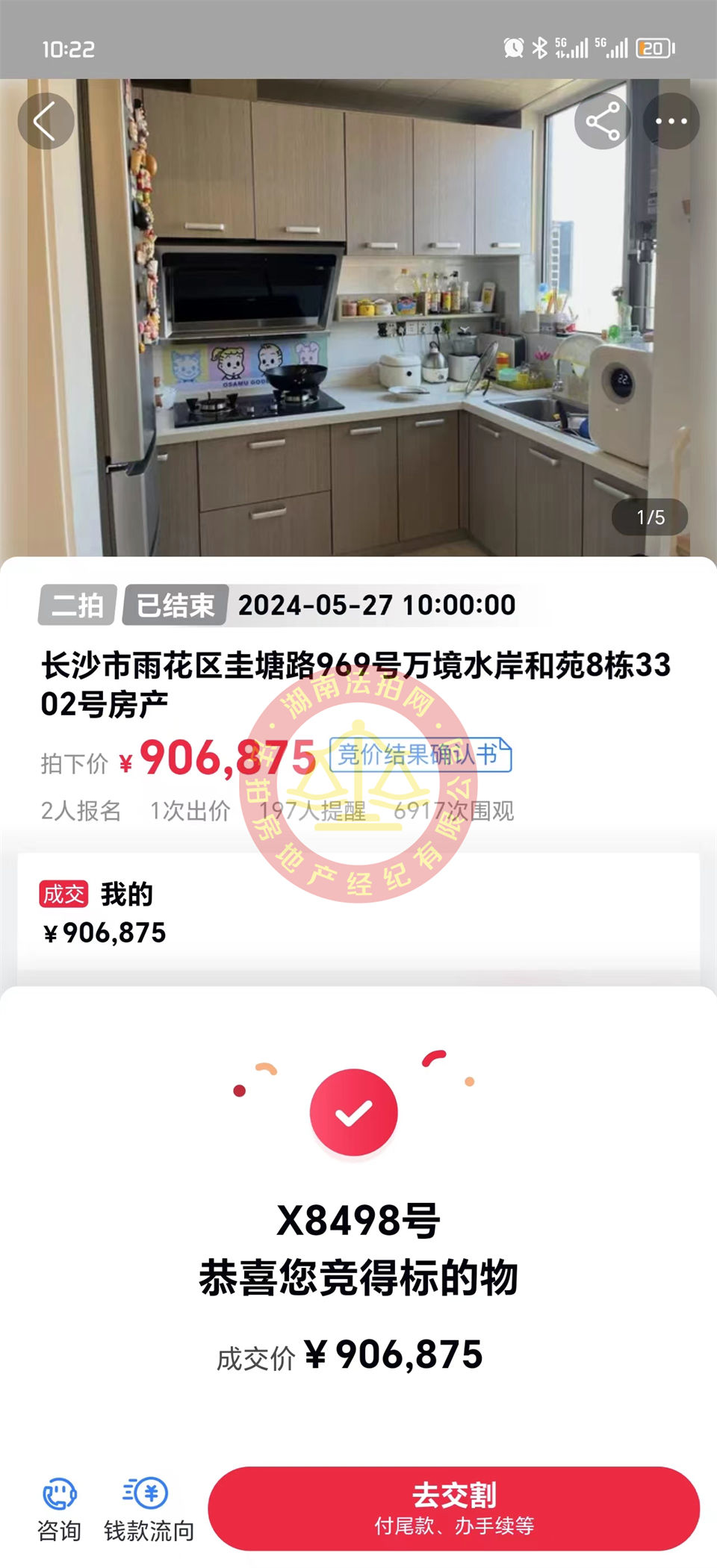 恭喜Y哥撿漏五礦萬(wàn)境水岸和苑雙學(xué)位法拍房一套。