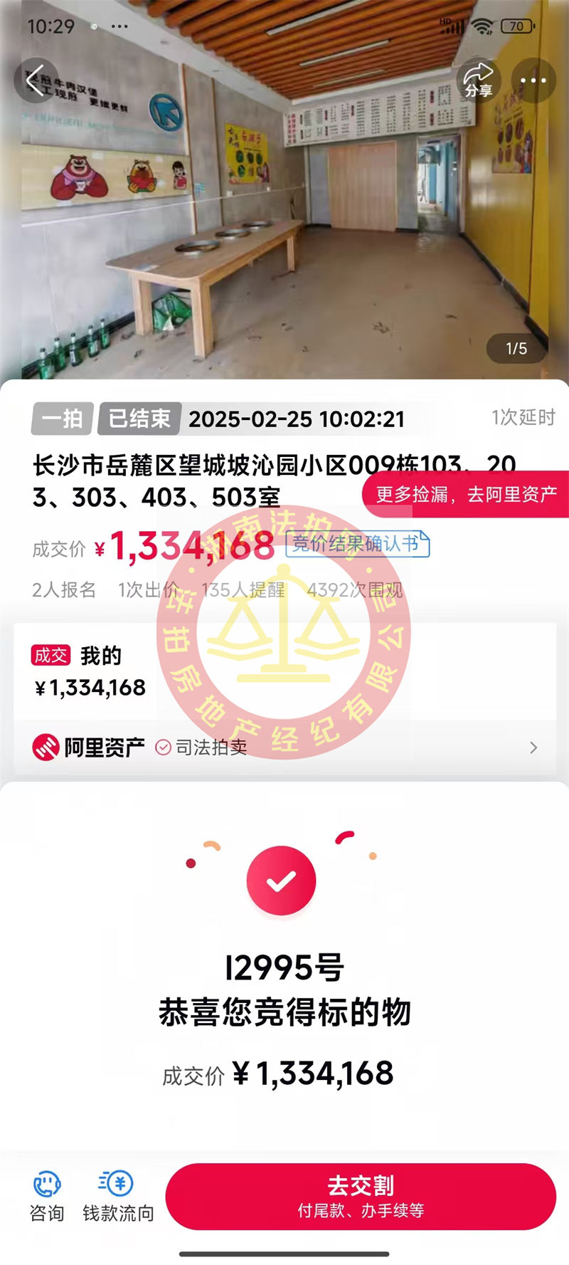 拍這個(gè)房子之前也跟客戶(hù)講了,3個(gè)點(diǎn)服務(wù)費(fèi)就搞不了的,底價(jià)成交的話(huà),給20萬(wàn)。如果有加價(jià)的話(huà),就適當(dāng)減少服務(wù)費(fèi),我們包解決租賃收房,劉小姐同意了,于是就拍了,結(jié)果2個(gè)人報(bào)名,另外一個(gè)人沒(méi)出價(jià),直接底價(jià)拿下,撿大漏,笑死了。