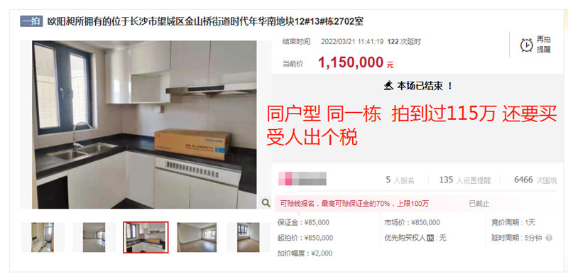 在湖南法拍網(wǎng)法拍房地產(chǎn)經(jīng)紀(jì)有限公司的輔助競拍下,Q哥成功撿漏時代年華精裝修四房一套,小撿漏幾萬塊。